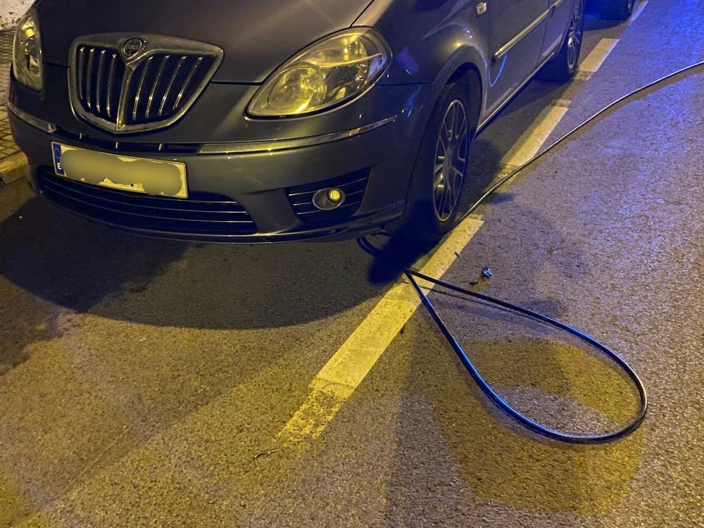 Uno de estos postes cayó de lleno sobre el parabrisas de un vehículo que circulaba en sentido contrario, ocupado por dos jóvenes.
