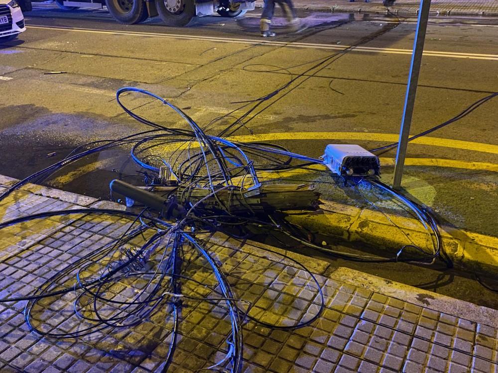 Los hechos se produjeron en torno a las 12:30 de la madrugada. Al parecer, un camión con una grúa en la parte superior, que circulaba por la Gran Avenida, en sentido norte sur, enganchó uno de los cables del tendido telefónico, soportado por varios pilares situados en ambos márgenes de la avenida. Como consecuencia de ello, arrastró el cable que, por la tensión arrancó varios de los postes de madera que lo sujetaban.