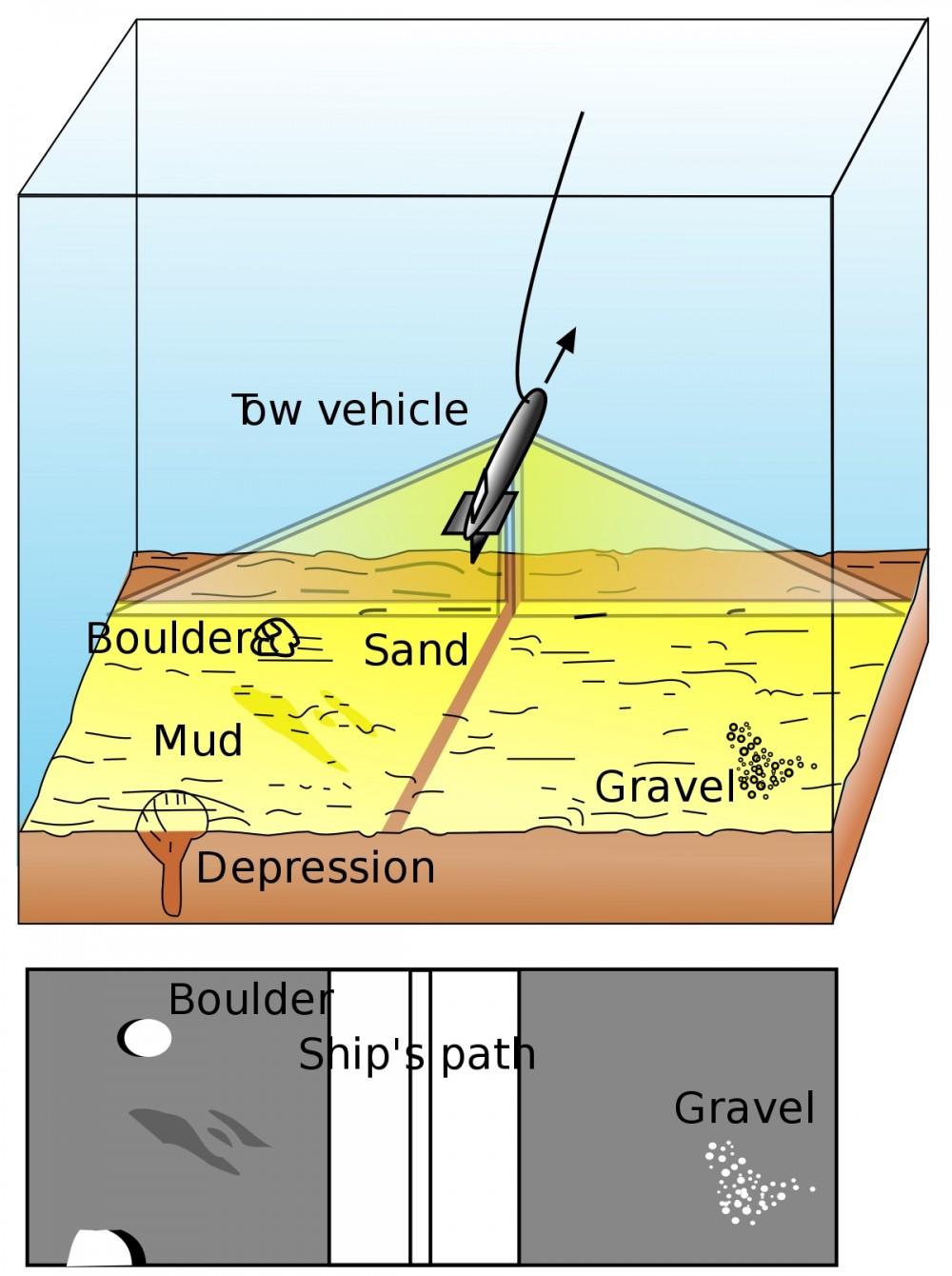 width=La diferencia de este sónar con los que se han utilizado hasta el momento, es que los anteriores realizan un barrido vertical, de la superficie hasta el fondo. Eso permite ver una imagen en dos dimensiones como una fotografía plana. En este caso, el barrido lateral perfecciona la recogida de imágenes en 3D. De manera coloquial podría equipararse a lo que se conoce como una ecografía donde no solo se aprecia el contorno de las formas,  sino también el relieve de las mismas, para determinar los distintos elementos y su superposición en el fondo del mar.