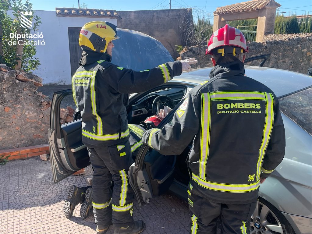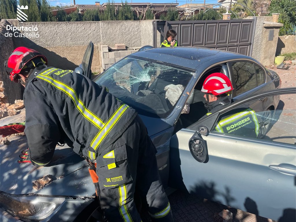 Bombers del parc Plana Baixa han intervingut aquest matí en un accident on un turisme ha col·lidit contra la paret del pati d'un habitatge en el terme municipal de Vila-real.