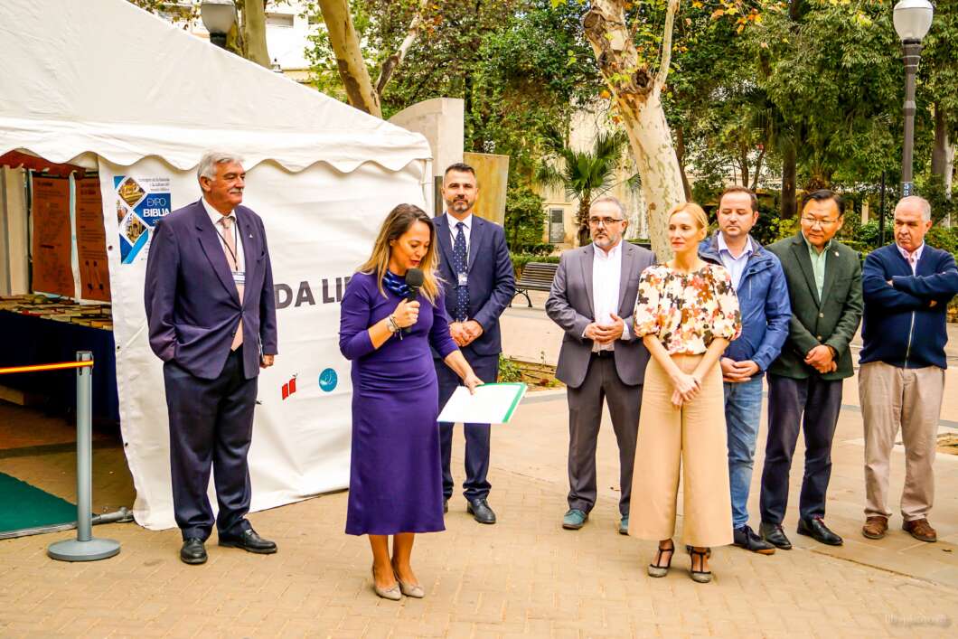El parque Ribalta de Castellón ha acogido este viernes la inauguración de Expobiblia, una muestra itinerante que permanecerá abierta al público hasta el próximo domingo, 29 de octubre. Un acto al que han asistido la concejala de Bienestar Social, Maica Hurtado; la cónsul de Rumanía, Dorina Irina Popan; y el organizador del evento, Javier Moliner.