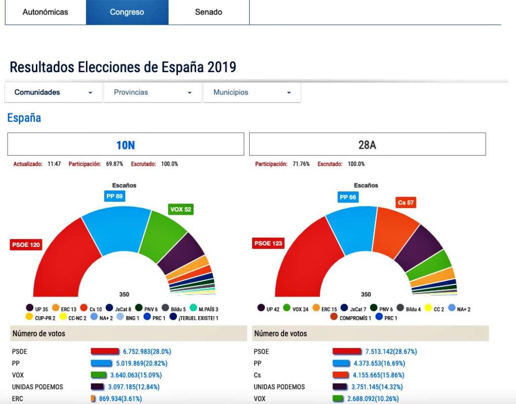 Resultados electorales elecciones generales 10 de noviembre de 2019