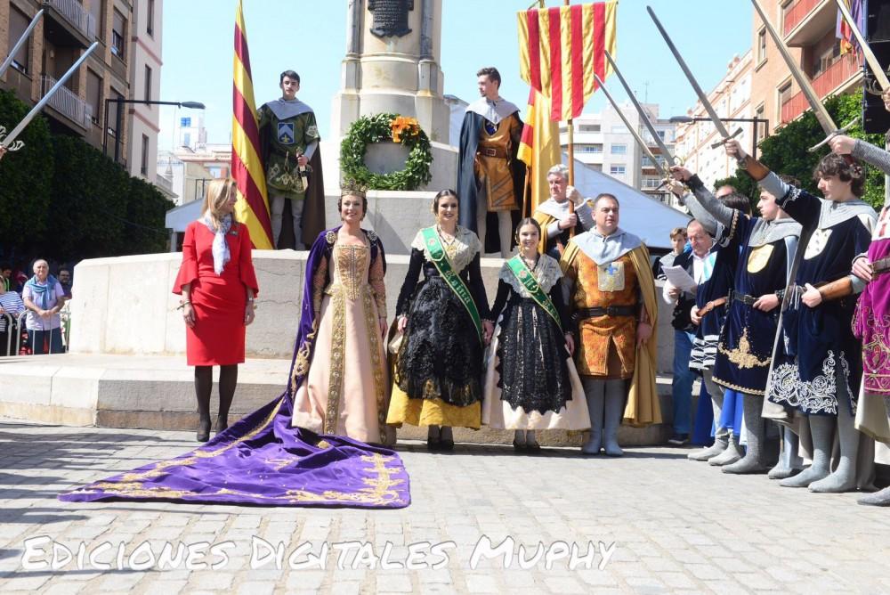 El público comenzaba a dispersarse y la comitiva se organizaba y se ponía en marcha para cumplir con el programa: imponer el pañuelo verde a la Figura de Tombatossasl y asistir al homenaje de la Germandat dels Cavallers de la Conquesta y su Na Violant D’Hongría a la figura del Rey Jaume I.