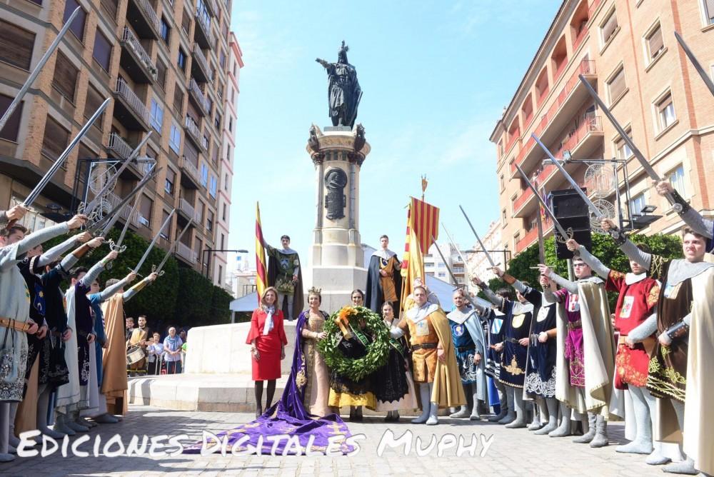 Recepción oficial en el Ayuntamiento, pañuelo a Tombatossals, homenaje al monumento del Rey Jaume I y mesones por doquier