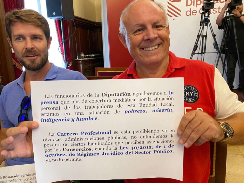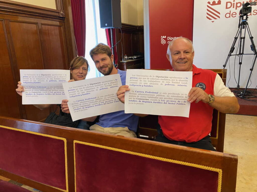 Una vegada més, els representants sindicals van protestar en Diputació, durant el ple i amb pancartes, per a sol·licitar que la institució provincial reconega la carrera professional. Tal com manifestaven a Castelló Informació: no és de rebut que aquesta carrera professional s'aplique als funcionaris de la Generalitat, que ja l'haja posada en marxa l'ajuntament de Castelló però seguisca sense aprovar-se per als treballadors de la Diputació.