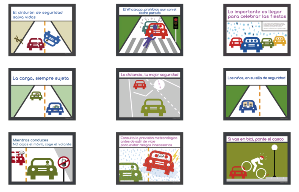 Junto con la edición de infografías, la campaña también incluye la publicación de manuales y carteles divulgativos cuyos ejes son la difusión de conductas y hábitos saludables durante los desplazamientos de circulación, así como la comunicación de los riesgos y situaciones peligrosas que acarrean el consumo de sustancias, la fatiga, el sueño, el estrés, la agresividad, el exceso de velocidad y el uso de dispositivos móviles durante la conducción.