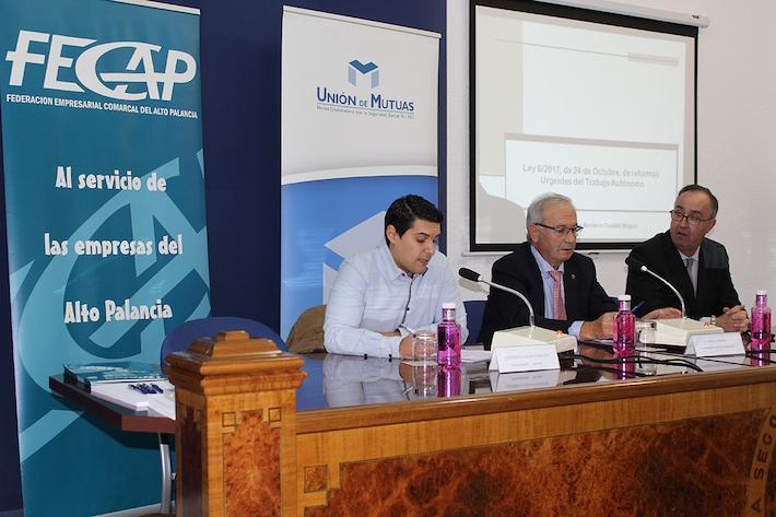 La Federación Empresarial Comarcal del Alto Palancia, FECAP, y Unión de Mutuas han celebrado hoy, en la sede de la mutua en Segorbe, una jornada informativa sobre la ley de reformas del trabajo autónomo que tiene por objeto impulsar el empleo por cuenta propia a través de ayudas económicas y menos trámites burocráticos. La nueva ley entró en vigor el pasado 26 de octubre a excepción de una serie de medidas que no tendrán efecto hasta el próximo uno de enero de 2018.