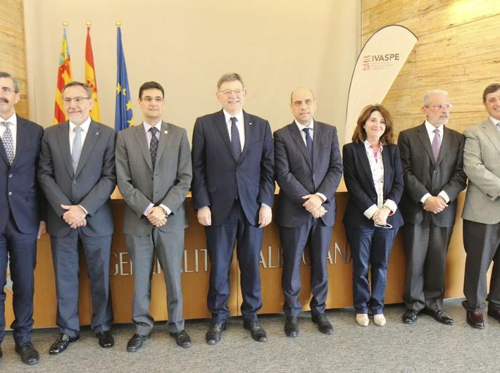 El edificio Prop de la Generalitat en Alicante ha sido el escenario elegido para formalizar la firma del convenio de colaboración entre las universidades públicas valencianas y la Generalitat para la "Formación e investigación en el ámbito de la seguridad y las emergencias". Una rúbrica que han protagonizado el presidente de la Generalitat, Ximo Puig y los cinco rectores de las universidades públicas valencianas, Amparo Navarro, rectora en funciones de la Universitat d'Alacant; Esteban Morcillo, rector de la Universitat de València; Vicent Climent, rector de la Universitat Jaume I de Castelló; Francisco Mora, rector de la Universitat Politècnica de València; y Jesús Tadeo Pastor, rector de la Universidad Miguel Hernández de Elche.