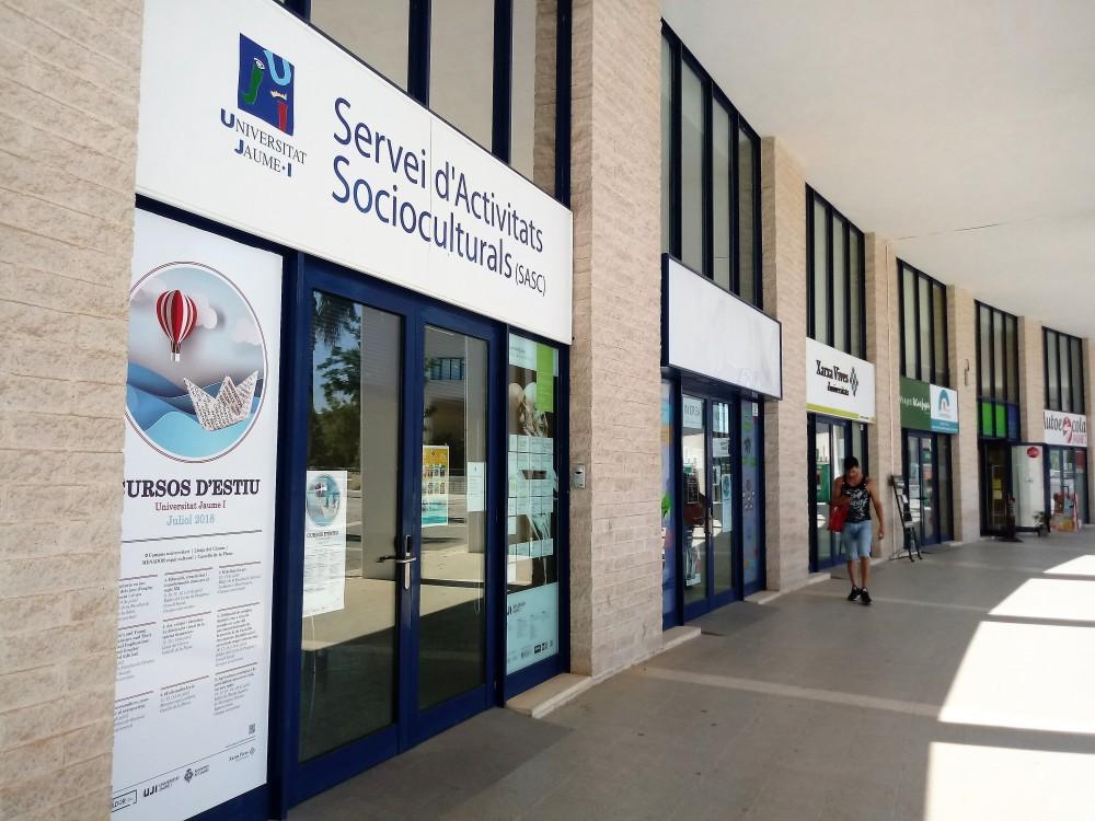 El ágora del campus del Riu Sec es el centro de la vida de la Universitat Jaume I. Es una zona porticada semicircular donde se encuentra el área de servicios que da acceso a la Facultad de Ciencias Humanas y Sociales, a la Biblioteca y al edificio de Rectorado y Servicios Centrales. En esta plaza se encuentran 20 locales comerciales, tres de ellos vacíos, y siete ocupados por servicios de la Jaume I. El elevado coste de alquiler de los locales y el cierre del campus en periodos vacacionales son algunas de las causas de la marcha de algunas empresas en el campus.