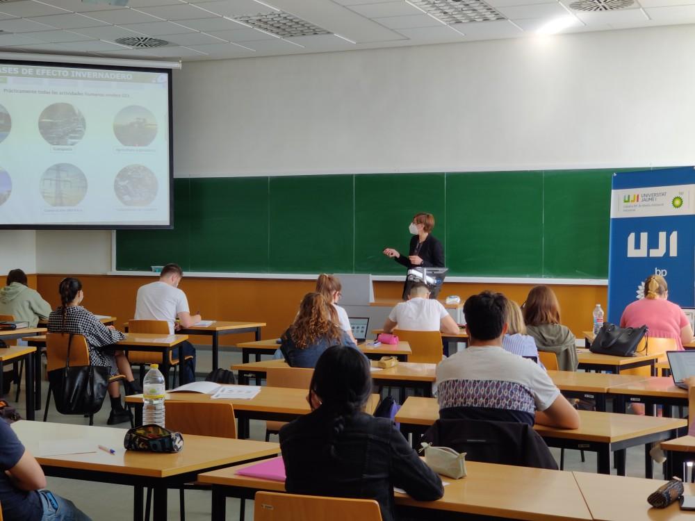 El contingut del seminari ha sigut preparat per l'autora del treball Premi a millor TFG/TFM de la Càtedra BP de l'UJI, Karen Valls, que actualment desenvolupa la seua tesi doctoral entorn de la mitigació del canvi climàtic i l'anàlisi d'oportunitats d'economia circular en organitzacions. Per motius personals, la ponència ha sigut duta a terme finalment per la directora del treball i catedràtica de l'àrea de projectes d'enginyeria, Loles Bovea. Aquesta activitat, presencial per a 35 assistents del Grau en Enginyeria Química, s'ha pogut continuar en línia de manera simultània per fins a 76 persones d'un total de 115 inscrits.