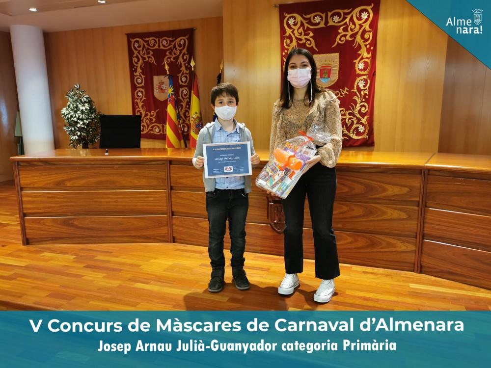 L'Ajuntament d'Almenara ha entregat els premis del V Concurs de Màscares que ha organitzat recentment el Casal Jove amb motiu del carnaval. A causa de la pandèmia del Covid-19 enguany el concurs va adoptar el format digital ja que s'havien d'enviar fotografies de les màscares confeccionades. Cal recordar que aquestes havien de ser d'elaboració pròpia i es podien utilitzar tota classe de materials. El jurat, compost pels Quintos 2020 ha valorat la creativitat, l'estètica i l'ús de materials reciclats, sostenibles i respectuosos amb el medi ambient. L'exposició també s'ha realitzat de manera virtual en les xarxes socials municipals.