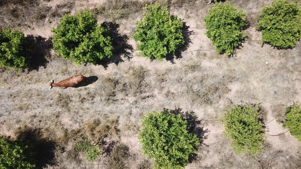 Localizada sobre las 12 horas la vaca que se estaba siendo buscada desde ayer por la tarde mediante el dron de la Policía Local de Nules dentro de un huerto cerca del Pozo San Roque.