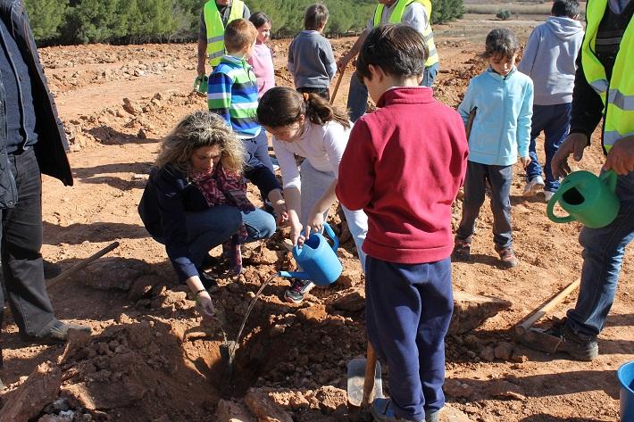 Los niños del CEIP l’Albea de Vall d’Alba han participado activamente en la conmemoración del Día del Árbol. Los jóvenes estudiantes se desplazaron hasta una parcela del Polígono Industrial de la localidad, donde se han plantado 200 pinos de la especie ‘pinus halepensis’.