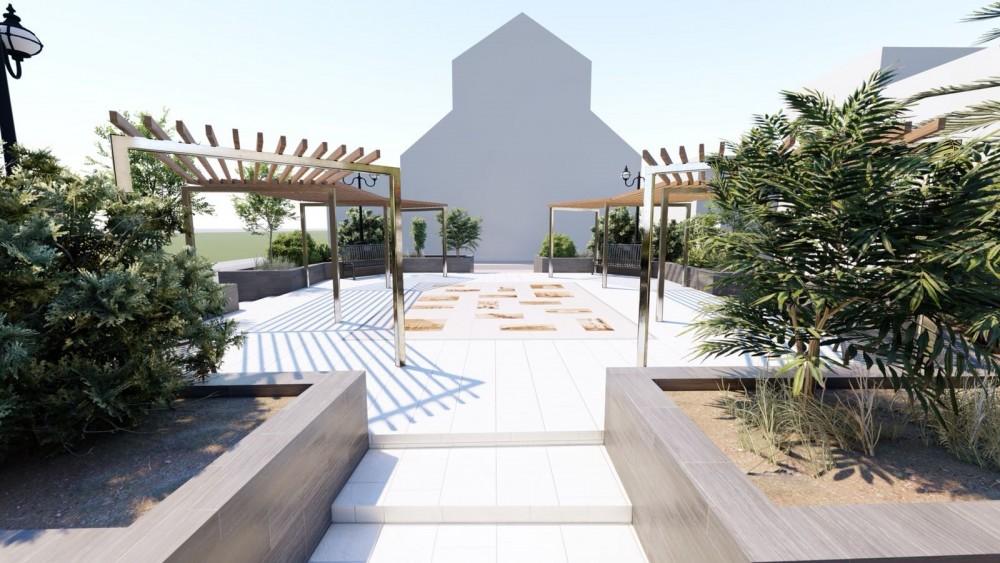 “La intención del equipo de gobierno es eliminar el montículo que ahora mismo hay en el centro del jardín de la plaza, sustituyéndolo por un mural cerámico diseñado especialmente para Vall d’Alba y hacer además el espacio más aprovechable a los vecinos”, anuncia la alcaldesa, Marta Barrachina, quien además anticipa que se colocará una pérgola de madera y acero inoxidable de forma perimetral en la plaza y de tres metros de altura aproximadamente, y que respetará la forma hexagonal de la plaza.