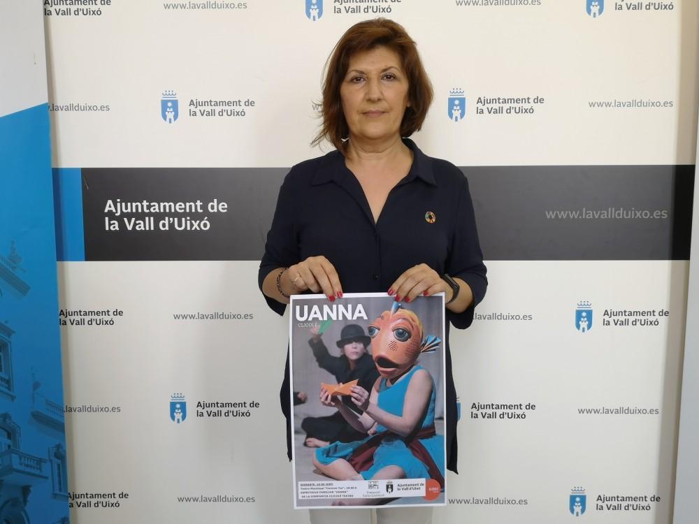 Por otro lado, la concejala de Cultura ha anunciado que, gracias al acuerdo de colaboración entre la Fundació Caixa Castelló y el Ayuntamiento de la Vall d'Uixó, el 19 de junio a las 18.00 horas en el Teatro Carmen Tur se representará la obra Uanna. La entrada al espectáculo es gratuita y debido a las restricciones de aforo por la pandemia se debe reservar previamente al teléfono 610 744 569.
