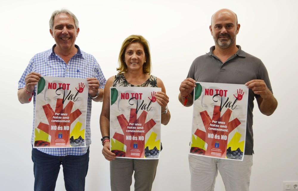 El Ayuntamiento de la Vall d'Uixó ha lanzado la campaña 'Tot no val', coincidiendo con la celebración de Les Penyes en Festes, con el objetivo de promover unas fiestas amb coneixement, "una expresión muy utilizada, sobre todo por las personas mayores, porque no queremos que se produzcan actitudes incívicas ni ningún tipo de abuso", han explicado los concejales de Policía, Javier Ferreres, y de Igualdad, Francesca Bartolomé.