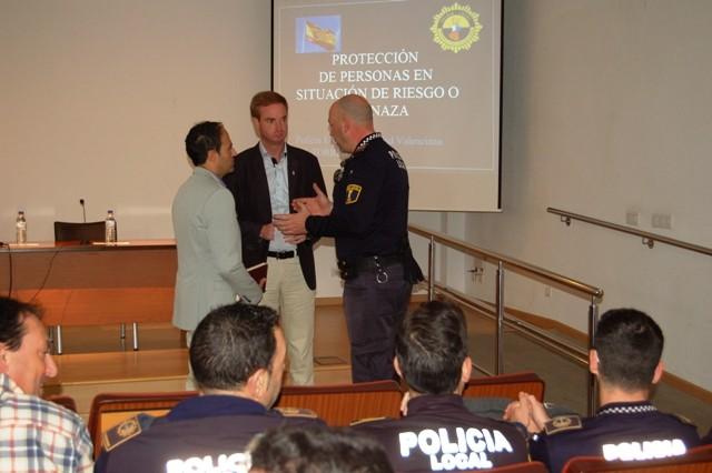 El alcalde, Óscar Clavell, ha inaugurado el curso al que asisten casi 30 agentes de varios municipios valencianos. Clavell ha valorado el trabajo que realizan los cuerpos y fuerzas de seguridad en todas sus vertientes, pero sobre todo en la faceta de protección de aquellas personas que están en situación de riesgo o amenaza.