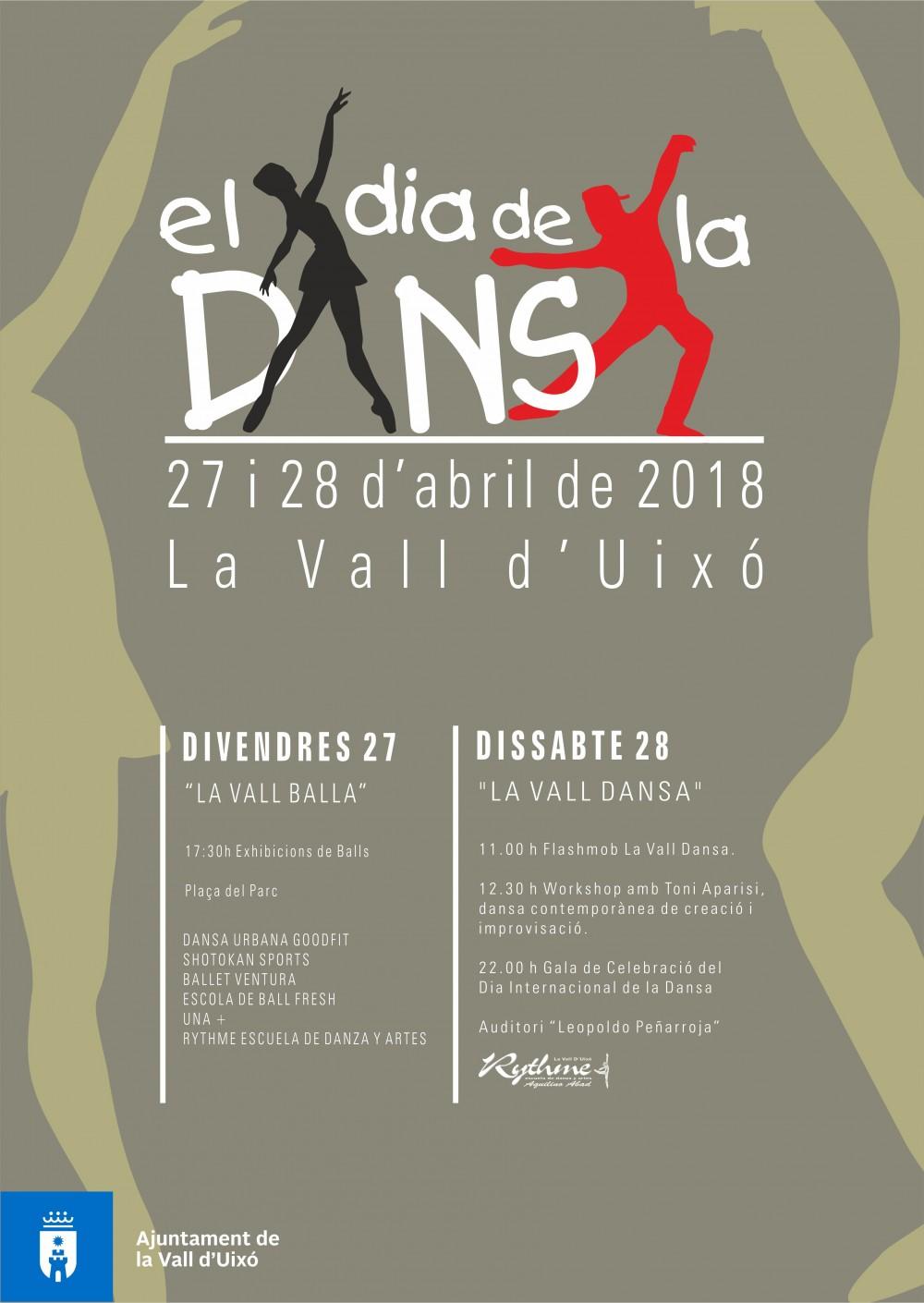 El Ayuntamiento de la Vall d'Uixó ha presentado el programa de 'El dia de la dansa' que se celebrará por primera vez en la ciudad los días 27 y 28 de abril. Durante el fin de semana se realizarán diferentes actividades relacionadas con esta disciplina en la Plaza del Parque y el Auditori Leopoldo Peñarroja, organizadas por las concejalías de Cultura y Juventud junto a la Escuela de Baile Rythme.