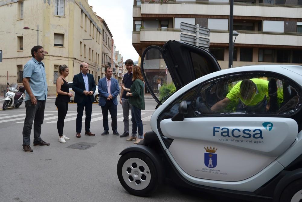 El Ayuntamiento de la Vall d’Uixó y Facsa, adjudicataria del servicio de agua potable de la localidad, han presentado el nuevo vehículo eléctrico que la empresa ha incorporado al Servicio Municipal de Agua Potable. Una adquisición que se suma a la flota de vehículos “cero emisiones” de la que dispone el Ayuntamiento de la ciudad, y que reafirma la apuesta de ambas entidades por el medioambiente, la movilidad sostenible y la eficiencia.
