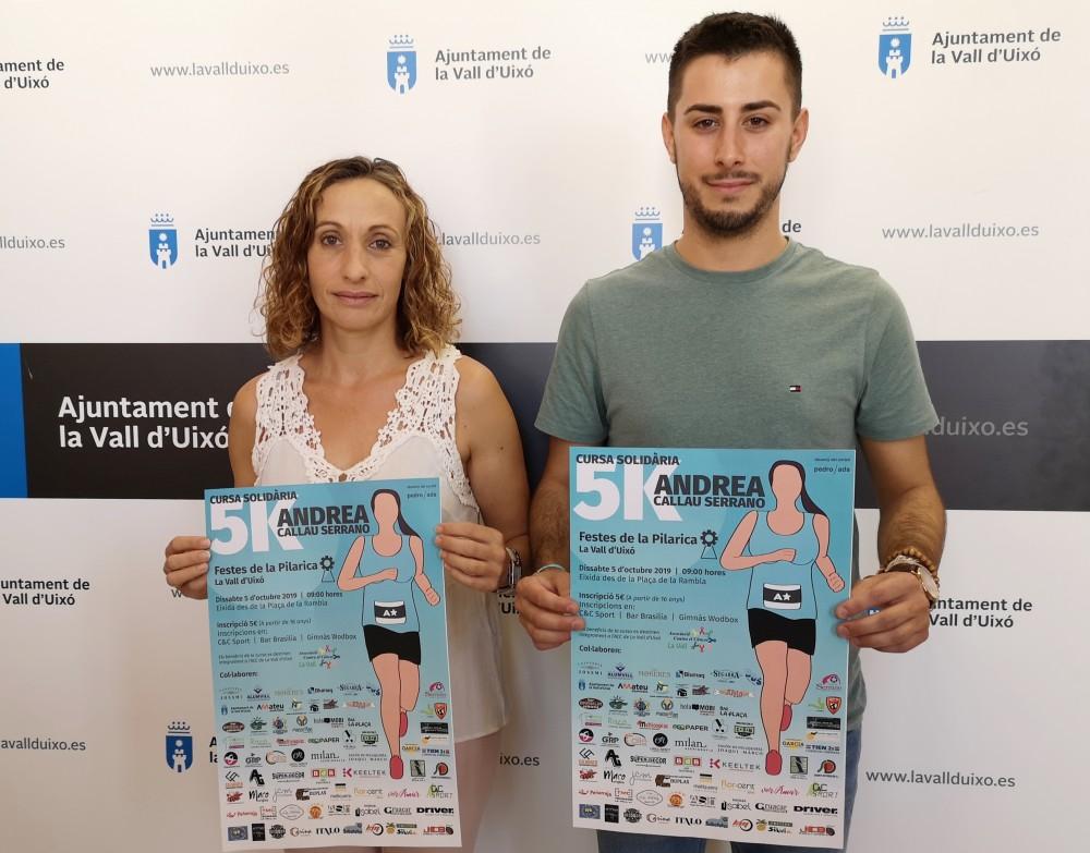 El Ayuntamiento de la Vall d'Uixó y las fiestas del Pilar han presentado la I Cursa Solidària 5K Andrea Callau Serrano, que se celebrará el 5 de octubre a las 9.00 horas con salida desde la plaza de la Rambla. El recorrido constará de dos vueltas por un circuito circular por los puntos más emblemáticos de los barrios de la Pilarica, Sant Vicent y l'Assumpció y los beneficios se destinarán íntegramente a la Associació Contra el Càncer la Vall.