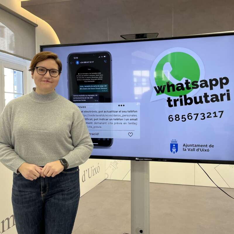El Ayuntamiento de la Vall d'Uixó ha presentado el Whatsapp Tributario, un nuevo servicio en pruebas que "moderniza la administración pública para hacer más fáciles y cómodos a la ciudadanía los trámites de solicitud de información y de documentación", tal y como ha explicado la concejala de Hacienda y Modernización Administrativa, Zaida Moreno.