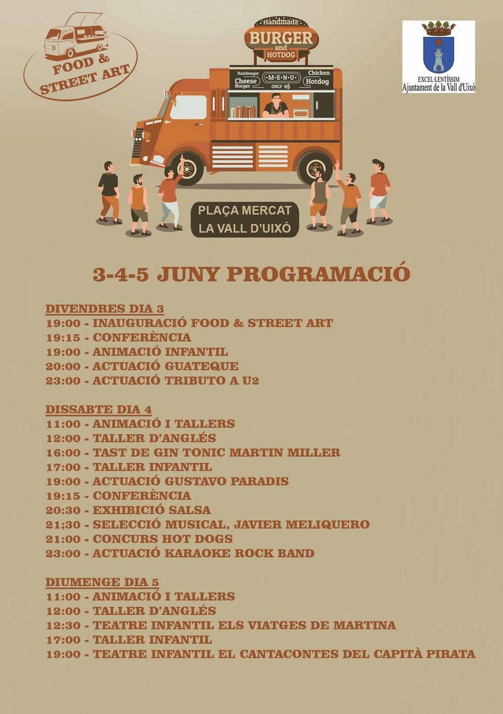 La plaza del Mercado acogerá los días 3, 4 y 5 de junio el I Food & Street Art de la Vall d'Uixó, un evento organizado por Factory Events en colaboración con la Concejalía de Turismo. 11 camionetas de estética vintage protagonizarán un evento "que además de la oferta gastronómica también ofrecerá actividades de dinamización para atraer a gente de fuera y a los valleros y valleras", ha explicado el concejal del área, Jordi Julià.