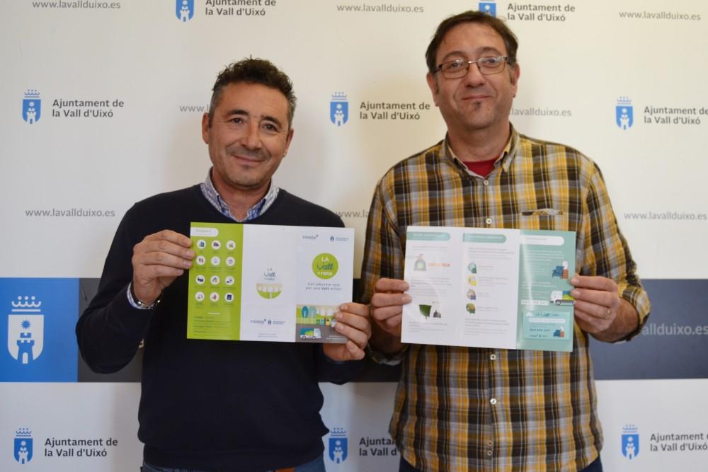 El Ayuntamiento de la Vall d'Uixó y FOVASA, la empresa que presta el servicio de recogida de residuos y limpieza viaria en la localidad, han presentado esta mañana la campaña de sensibilización 'La Vall + neta', que este año pretende potenciar el uso del servicio gratuito de recogida a domicilio de voluminosos. Unos objetos cuya presencia en la vía pública, sobre todo al lado de los contenedores, se ha convertido "en un grave problema de imagen y de accesibilidad", tal y como ha explicado el concejal de Medio Ambiente y segundo teniente de alcalde, Fernando Daròs.