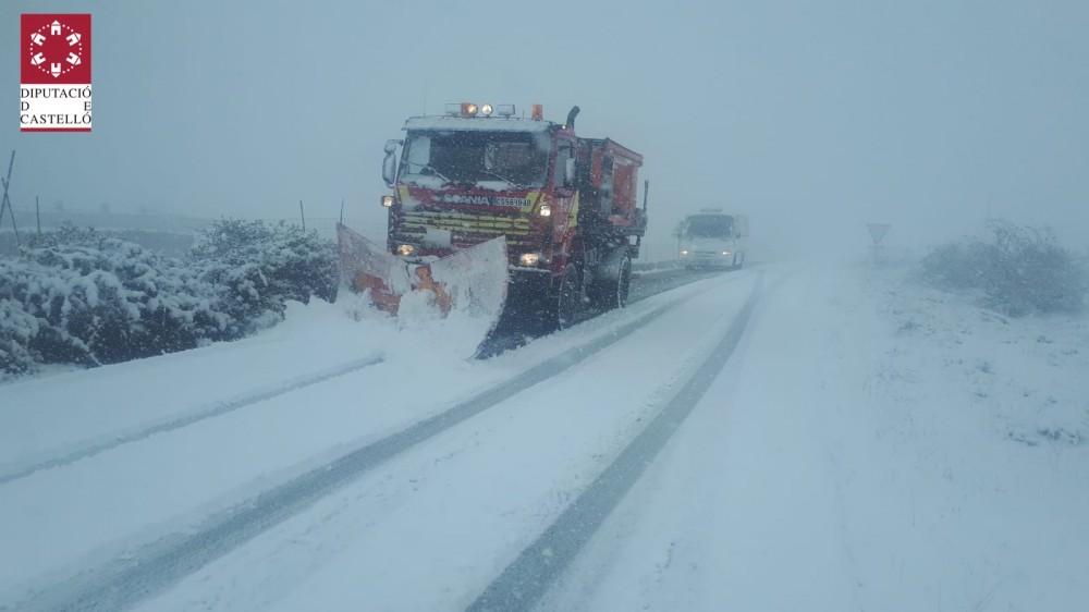 Desde primera hora de la tarde el Consorcio de Bomberos de Castellón ha activado parte del dispositivo de nevadas, concretamente cuatro máquinas quitanieve, ante las nevadas que se han estado produciendo especialmente en el interior norte de la provincia, sobre todo en puntos como Vilafranca, Castellfort, Morella, la zona de Torremiró, Herbés o Castell de Cabres.