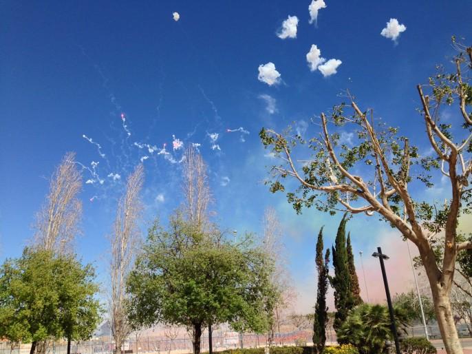 ¡Y claro que faltaba!. La mitad de la potencia y de los efectos que se habían diseñado inicialmente para disparar en Castellón. Las fuertes rachas de viento que dominaban sobre Castellón, y la dirección del viento, llevaron a Protección Civil a recomendar medidas de seguridad, que fueron comentadas con el Ayuntamiento y la Junta de Fiestas.