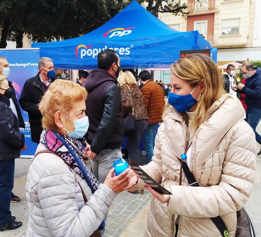 Los concejales del Populares, acompañados por la portavoz y presidenta del Partido Popular en la ciudad de Castellón, Begoña Carrasco; la presidenta del PP provincial, Marta Barrachina y la senadora por Castellón, Salomé Pradas, entre otros miembros del partido han repartido a pie de calle velas, para denunciar además el tarifazo de la luz con subidas imparables en la factura desde que gobierna Pedro Sánchez.