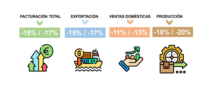 Se registran caídas de la demanda en los principales mercados debido a dos causas principales: situación inflacionista que se traduce en una ralentización del mercado de la construcción y la reforma pérdida de competitividad de nuestros productos frente a una competencia muy agresiva, tanto de otros países productores como de otros materiales sustitutivos.