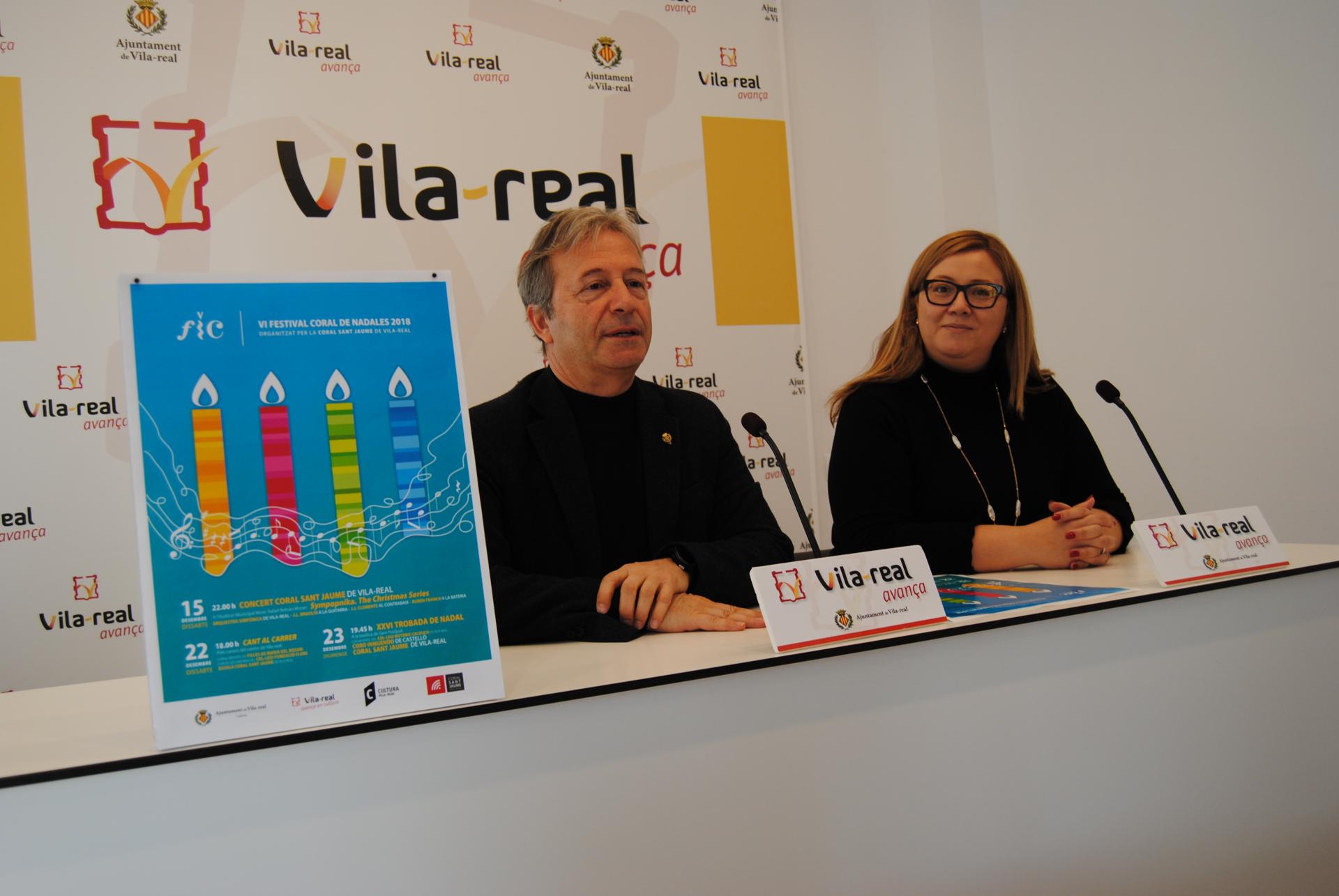 El regidor de Cultura, Eduardo Pérez, i la presidenta de la Coral Sant Jaume, Amparo Peña, han presentat la programació, que va començar el dissabte 15, amb el concert que va oferir la Coral Sant Jaume a l'Auditori, sota el títol 'Sympopnika. The Christmas Sèries', que va comptar amb l’Orquestra Simfònica de Vila-real i J. L. Braulio a la guitarra, J. J. Clemente al contrabaix i Rubén Franch a la bateria.