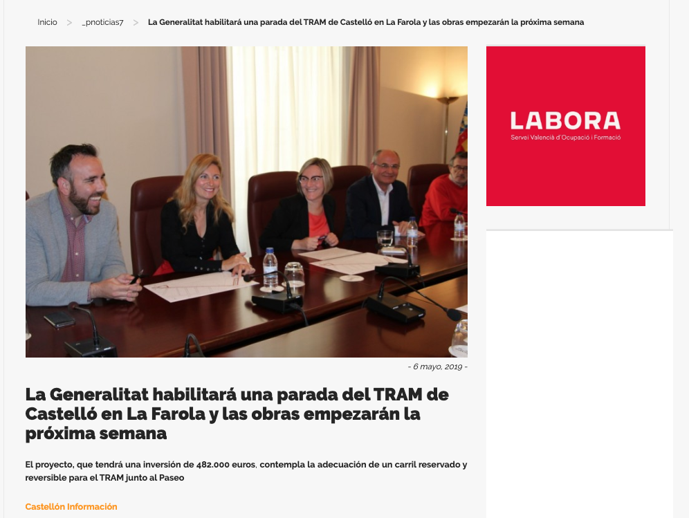 Tal como confirmaba el concejal de Urbanismo, Rafa Simó, y recogió Castellón Información, la mejora en el recorrido del Tram para aumentar su frecuencia y crear una nueva parada, fueron presentadas por la entonces consellera de Urbanismo, Mª José Salvador, y por la alcaldesa de Castellón, Amparo Marco, en un encuentro en el que se habló del transporte público de Castellón.
