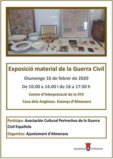 La mostra cedida per l'Asociación Cultural Pertrechos de la Guerra Civil Española es podrà contemplar en el Centre d'Interpretació únicament aquest diumenge pel que hi haurà un horari especial d'obertura. Així la mostra podrà veure's de 10 a 14 hores i de 16 a 17.30 hores. A més també es podrà veure la col·lecció permanent.