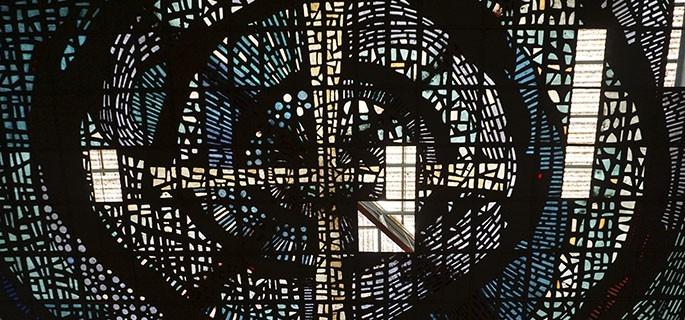 El artista que firma esta obra es el alicantino Arcadio Blasco, fallecido hace dos años, y que colaboraba con el arquitecto del edificio del Seminario, Luis Cubilade Arteaga, que también ha recibido un reconocimiento por su diseño arquitectónico. La luz atraviesa a través de 700 paneles el lucernario generando en el interior del templo una atmosfera realmente sobrecogedora, una auténtica ventana que nos invita a la trascendencia.