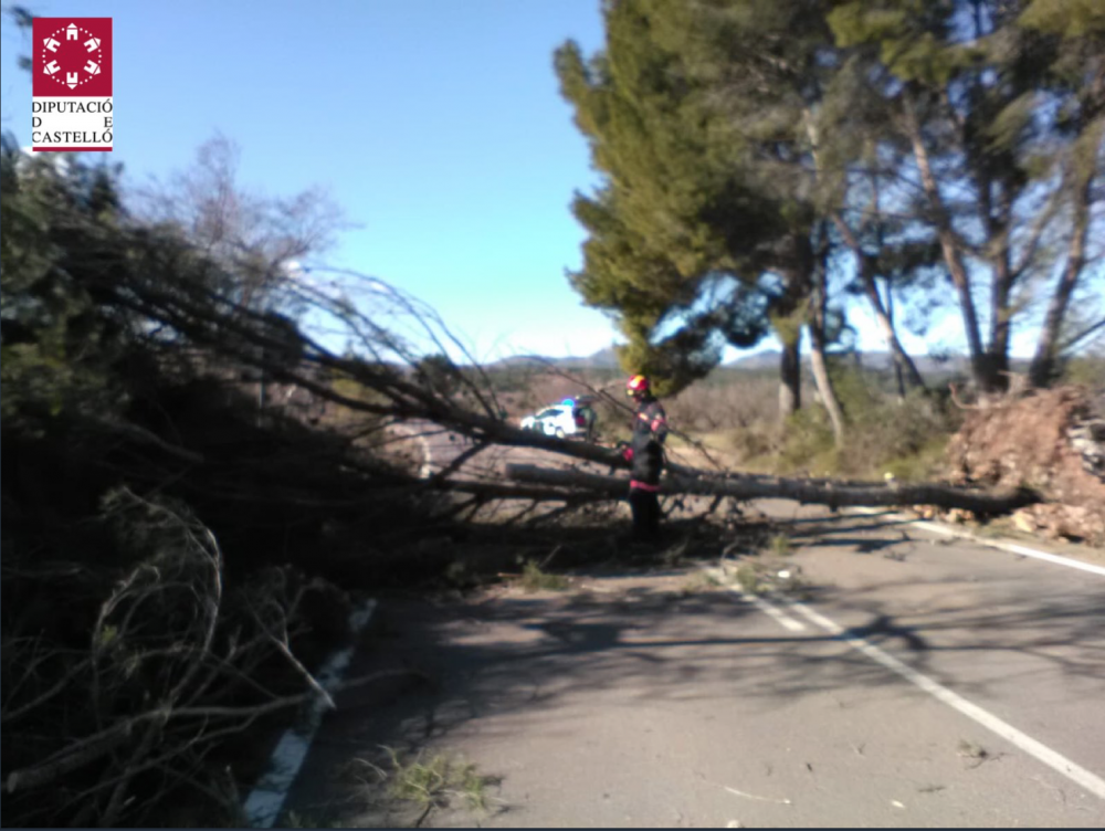 Cerca de las 00.00 el  CPBC se movilizó a la retirada de dos arboles caídos en la calzada en carretera del Plà de L’Arc en Cabanes. Y seguían registrándose rachas muy fuertes en la Plana Alta. En el aeropuerto de Castellón se superaban los 110 km/h desde las 21.00 horas. El viento fuerte también llegó al litoral de la comarca y en Torreblanca se superaron los los 80 km/h desde las 21.00 h. Los bomberos también han tenido que atender la retirada de un árbol caído sobre calzada en Benlloch, un incendio vegetación y enseres varios en un campo agrícola en zona de Torrenostra en Torreblanca, la retirada de chapa metálica grande que se ha desprendido y ha caído sobre tejado de una vivienda en la Vall d’Uixó, y ya esta mañana un incendio en planta reciclaje de Onda, la caída cartel publicitario en Alcossebre , la revisión de un muro tumbado por viento y a retirada cartel publicitario con peligro de caída en Vall d’Uixó,  la retirada chapas metálicas sobre calzada carretera en l’Alcora y otra arrancada del campo de fútbol de Nules y han sido movilizados a saneamiento parada autobús de Cedraman afectada por rachas de viento.