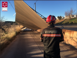 Cerca de las 00.00 el CPBC se movilizó a la retirada de dos arboles caídos en la calzada en carretera del Plà de L’Arc en Cabanes. Y seguían registrándose rachas muy fuertes en la Plana Alta. En el aeropuerto de Castellón se superaban los 110 km/h desde las 21.00 horas. El viento fuerte también llegó al litoral de la comarca y en Torreblanca se superaron los los 80 km/h desde las 21.00 h. Los bomberos también han tenido que atender la retirada de un árbol caído sobre calzada en Benlloch, un incendio vegetación y enseres varios en un campo agrícola en zona de Torrenostra en Torreblanca, la retirada de chapa metálica grande que se ha desprendido y ha caído sobre tejado de una vivienda en la Vall d’Uixó, y ya esta mañana un incendio en planta reciclaje de Onda, la caída cartel publicitario en Alcossebre , la revisión de un muro tumbado por viento y a retirada cartel publicitario con peligro de caída en Vall d’Uixó, la retirada chapas metálicas sobre calzada carretera en l’Alcora y otra arrancada del campo de fútbol de Nules y han sido movilizados a saneamiento parada autobús de Cedraman afectada por rachas de viento.