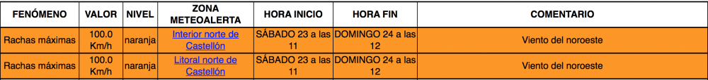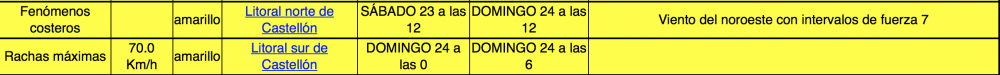 El temporal se irá intensificando en muchas zonas durante la mañana y soplará fuerte con rachas muy fuertes durante gran parte del día. Emergències de la Generalitat mantiene activada preemergencia por viento en el norte. Se han alcanzado rachas de viento en las últimas ocho horas (de 09.00 a 17.00) de 118 en Fredes, 89 en Villafranca, 87 en Morella y 68 en Montanejos