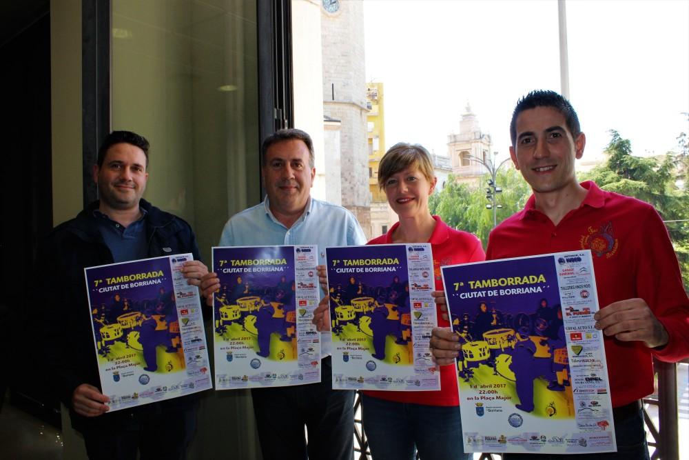 El president de l'Associació de Bombos i Tambors de la Santa Faz de Borriana, Carlos Panís, ha ofert avui els detalls de la setena edició de la Tamborrada Ciutat de Borriana, al costat de la també representant del col·lectiu, Carmen Pérez, i l'artista borrianenc, Juan Poré, que s'ha encarregat del disseny del cartell anunciador de la cita, a més de ser el convidat d'honor per realitzar el toc provincial amb el qual es tancarà l'acte amb tots i totes les participants tocant a l'uníson. Tal com han explicat tant Panís com el regidor de l'àrea de Turisme, Santiago Zorío, que també s'ha encarregat de l'organització de l'acte, “ja tenim confirmada l'assistència de més de 400 persones, amb el que esperem seguir superant la xifra de participació d'anys anteriors, i així vore si podem aconseguir fer sonar alhora a prop de 500 tambors i bombos”. La cita tindrà lloc a partir de les 22:00 hores del proper dissabte dia 1 d'abril en la plaça Major de Borriana, al costat de la Basílica d'El Salvador i el mateix edifici consistorial, encara que la cita per als bombos i els tambors serà en La Mercè, des d'on es dirigiran a través de la Tanda i El Pla perquè “a mitjanit quan la totalitat de confraries i associacions de tambors i bombos ens unirem en la mateixa plaça Major per realitzar el toc provincial de forma conjunta, després que el nostre convidat d'honor d'aquest any, l'artista Juan Poré, siga qui done el primer toc al que respondrem tots”. Una de les novetats que aquest any presenta la mateixa Associació de la Santa Faz és el nou estendard que s'ha elaborat per estrenar en un esdeveniment tan important, i que serà beneït prèviament durant la mateixa vesprada del dissabte. Tal com ha assenyalat l'edil Santiago Zorío, “es tracta d'una nova oportunitat de donar a conèixer la nostra ciutat i les seues expressions culturals a les poblacions veïnes i a totes les persones aficionades a aquest tipus d'actes que habitualment es desplacen per gaudir de la Tamborrada, així que esperem que, un any més, la participació tant dels mateixos protagonistes com del públic torne a omplir la plaça Major i els carrers més propers al centre històric de la ciutat”.