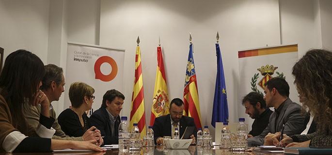 El alcalde de Vila-real, José Benlloch, preside la primera reunión de coordinación del futuro organismo en la que participan la Fundación Globalis, Caixa Rural, la Cátedra de Innovación Cerámica y la Cámara de Comercio.