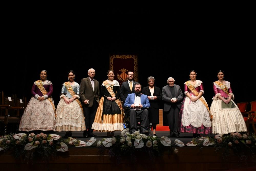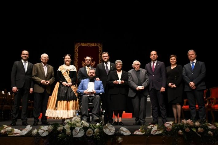 Després de l’acte d’homenatge, l’activitat s'ha traslladat a l’Auditor, per a gaudir de l'acte de lliurament dels premis 20 de febrer.  L'Asociación Conquistando Escalones, Juan Bautista Llorens Bort, Conchita Catalán i Leandre Adsuara han rebut els guardons en un acte solemne presidit per l'alcalde, José Benlloch, i el regidor de Cultura, Eduardo Pérez, que han elogiat la seua trajectòria en els seus respectius àmbits.