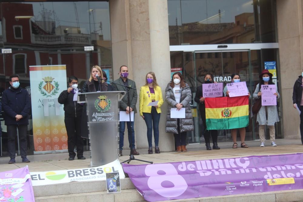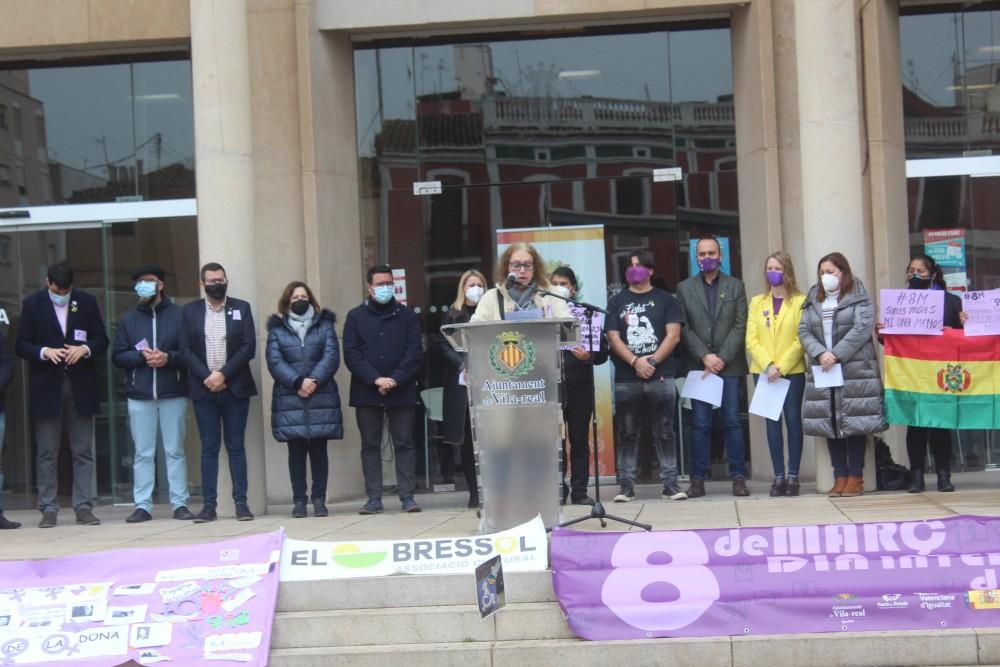 Tots els grups que conformen l’Ajuntament de Vila-real (PSOE, Unides Podem, Compromís, Ciudadanos i PP) han signat el manifest que dona suport al moviment feminista del 8 de març, Dia Internacional de la Dona. Tots els grups “a excepció de Vox” ha volgut recalcar la regidora d’Igualtat, Sílvia Gómez qui ha encapçalat l’acte en el qual també han participat associacions que treballen cada dia contra la desigualtat entre dones i homes. Aquestes associacions que també han expressat les seues preocupacions en els seus corresponents manifests són Grup de Dones de Vila-realAfym LGTBI+, Fundació Manantial, El Bressol Creu Roja. També han comptat amb la presència del Centre Juana Azurduy gràcies al Fons Valencià per la Solidaritat que col·labora amb el país, presidit pel regidor Álvaro Escorihuela.