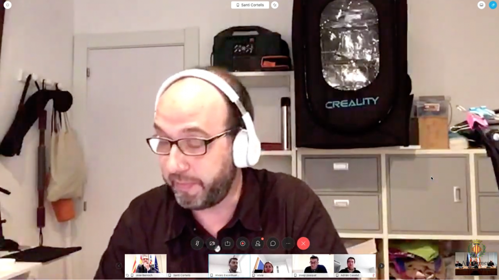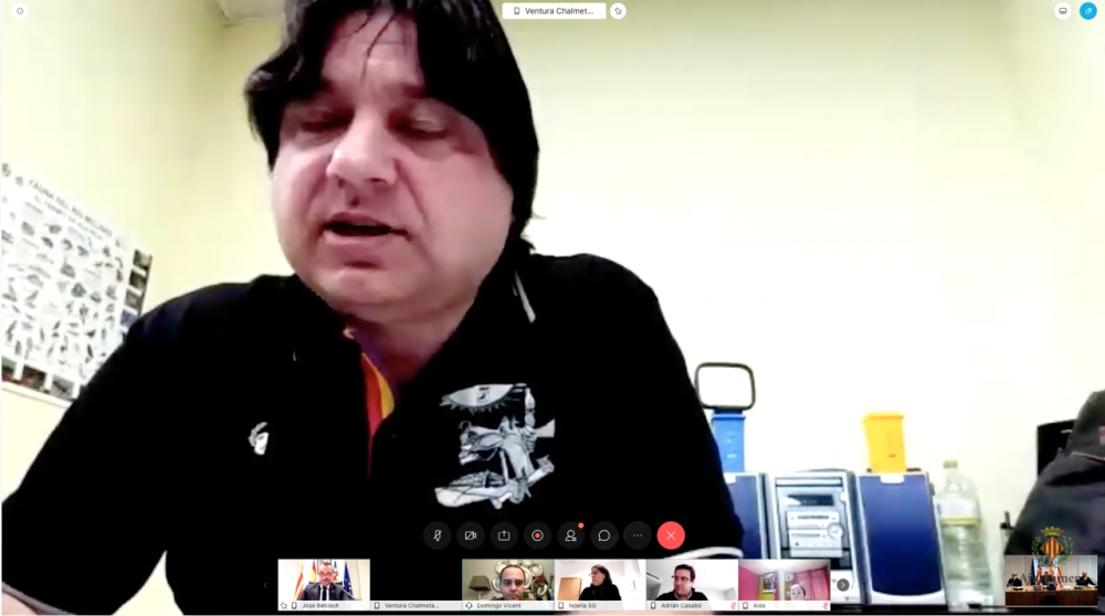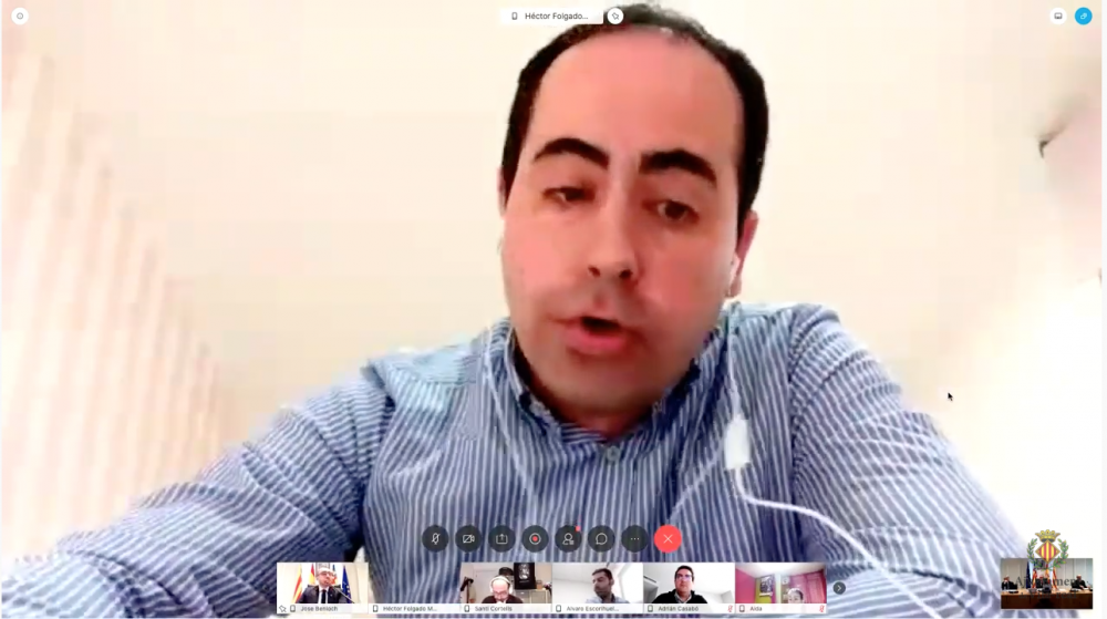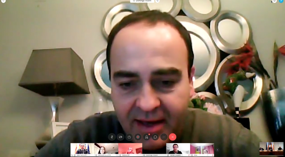 L’alcalde sí que es trobava en la sala de plens de l’Ajuntament junt amb l’interventor municipal, el secretari i la resta de24 regidors han participat des de casa amb una videotrucada conjunta ateses les mesures de prevenció per la pandèmia.