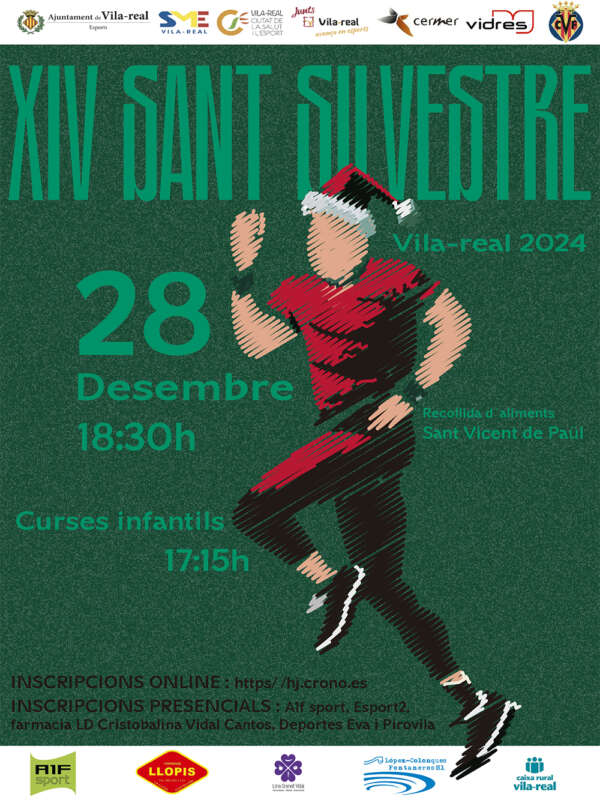Vila-real posarà el punt i final a l'any amb una de les proves més esperades i festives del calendari esportiu local: la XIV Sant Silvestre, organitzada pel Club Triatló Vila-real amb la col·laboració del Servei Municipal d'Esports (SME). La prova tindrà lloc el pròxim 28 de desembre, a partir de les 18.30 hores, amb un recorregut de 5 quilòmetres pel centre de la ciutat, en què els participants podran gaudir d’una experiència esportiva envoltada de disfresses i bon ambient.
