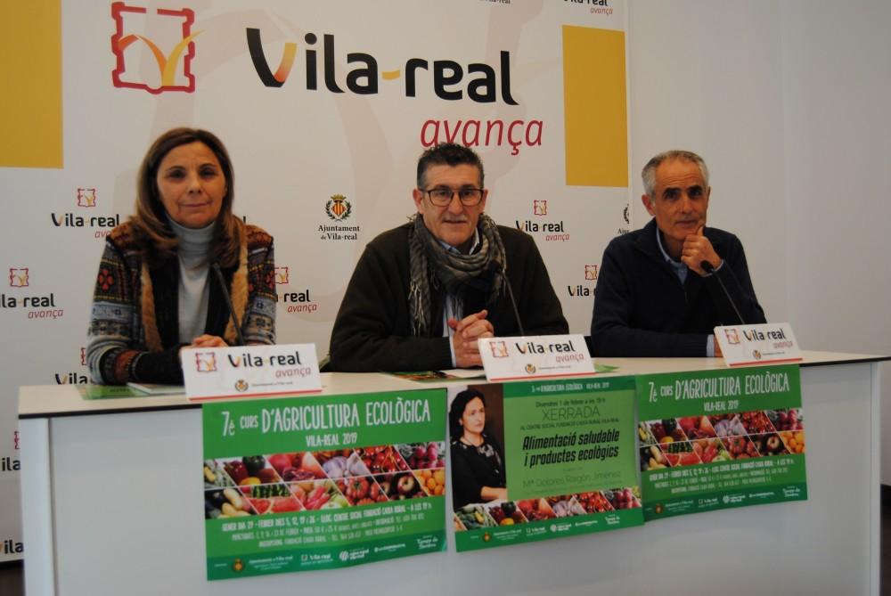 El Curs d'agricultura ecològica organitzat per Temps de Sembra, amb la col·laboració de la Regidoria d'Agricultura, Medi Ambient i Canvi Climàtic, la Fundació Caixa Rural Vila-real i la Cooperativa Catòlica-agrària, prepara una nova edició, la setena, amb l'objectiu d'oferir formació bàsica i completa en una activitat en auge per al cultiu de la terra des de criteris de respecte al medi ambient i la sostenibilitat. El regidor d'Agricultura, Medi Ambient i Canvi Climàtic, Josep Pasqual Sancho, acompanyat dels organitzadors del curs Pep Barrachina i Ana Claramonte, han presentat la nova convocatòria, que arrancarà el dia 29 de gener al centre social de la Fundació Caixa Rural Vila-real.