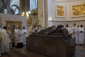 Vila-real celebra el seu dia gran, ja que és el la festa del patró sant Pasqual amb la missa pontifical, que ha tingut lloc a la basílica de sant Pasqual, i ha estat presidida pel bisbe de la diòcesi de Sogorb-Castelló, Casimiro López, i que ha comptat amb la intervenció de la Coral sant Jaume, Veus de Cambra, l'Orquestra Supramúsica i la Unió Musical la Lira, encarregades d'interpretar la missa solemne dedicada a Vila-real del mestre i Fill Predilecte Rafael Beltrán. La corporació municipal, encapçalada per l'alcalde, José Benlloch, i la reina i dames de les festes han participat a l'esdeveniment.