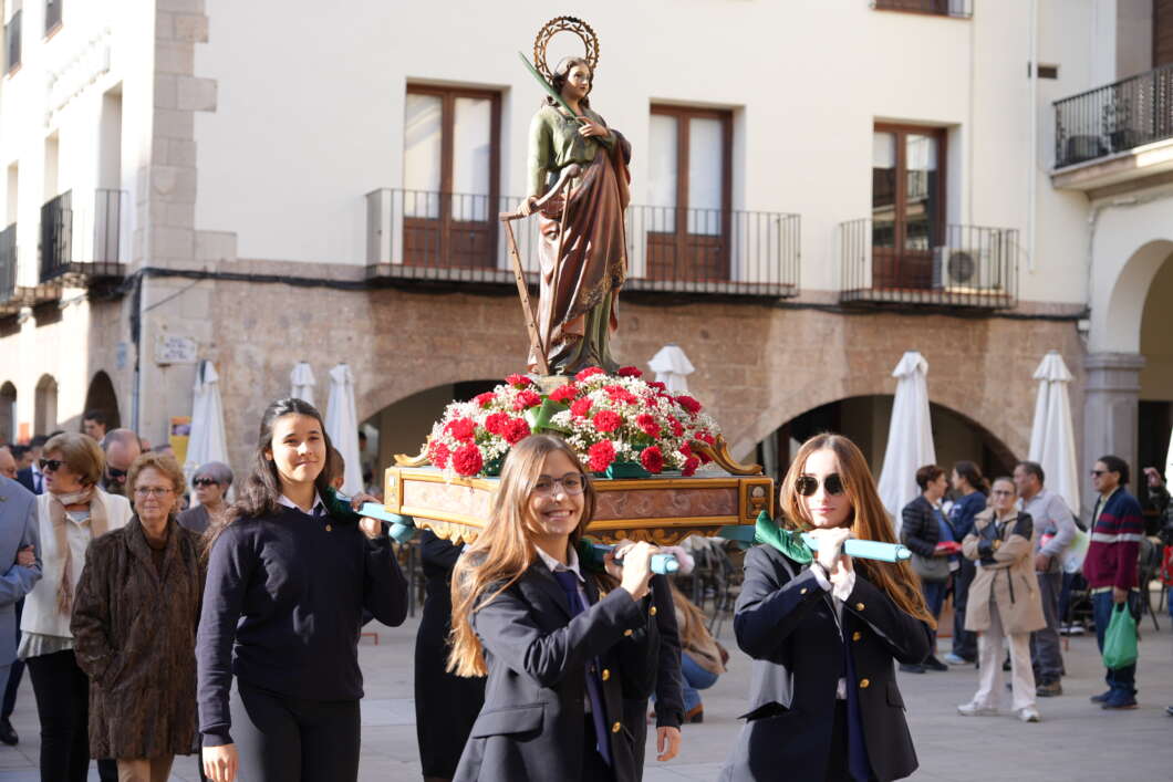 Com a condol i solidaritat amb les víctimes i afectats per la DANA, s'ha guardat un minut de silenci i la dolçainera Paloma Mora ha interpretat 'El cant dels ocells'. També per aquest motiu, el grup de danses El Raval ha decidit no interpretar els balls tradicionals en acabar la missa.