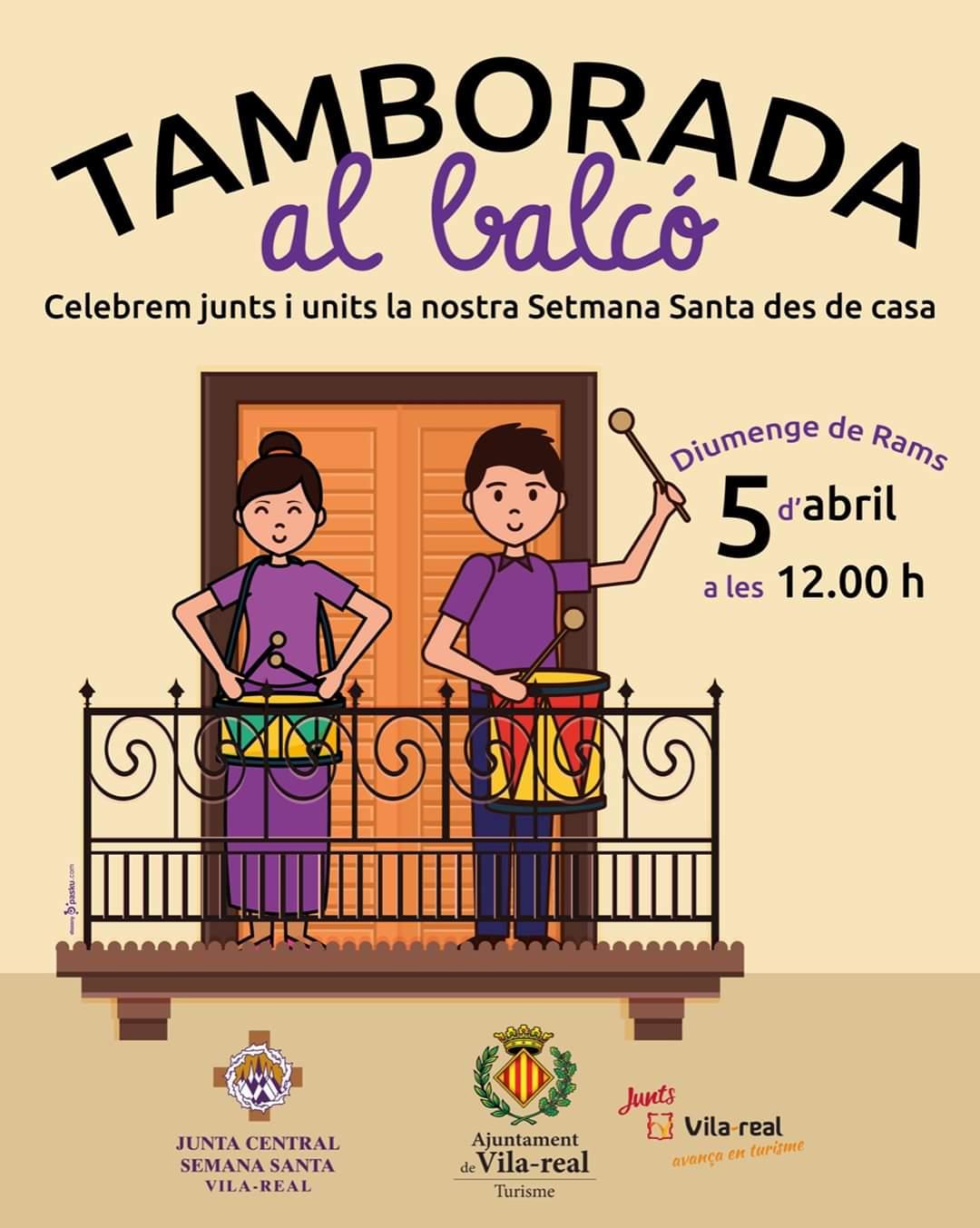 La tercera de les propostes per a aquest Diumenge de Rams és que a les 12 del migdia, hora en què estava prevista la tamborada local, els afeccionats als bombos i tambors i totes les persones que es vulguen sumar, participen en una tamborada col·lectiva des dels balcons, finestres i terrasses de la ciutat. “L'objectiu és que els sons i tradicions de la nostra Setmana Santa estiguen igualment presents en aquest moment”, apunta l'edil de Turisme, Diego Vila.