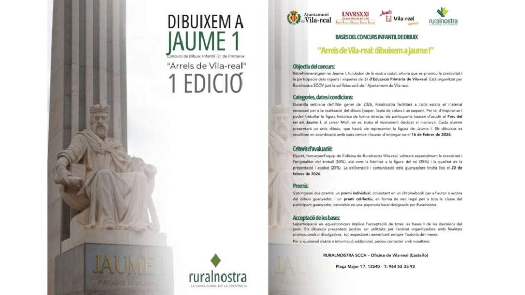 L’Ajuntament de Vila-real, en col·laboració amb Ruralnostra, ha posat en marxa la primera edició del concurs infantil de dibuix dirigit a alumnes de Tercer de Primària “Dibuixem a Jaume I. Arrels de Vila-real”.