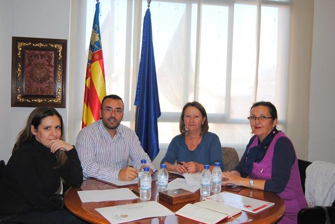 El alcalde de Vila-real, José Benlloch, junto a la concejala de Servicios Sociales, Mònica Alvaro, ha firmado un convenio de colaboración de 50.000 euros con la presidenta provincial de Cruz Roja, Flores Higueras, y la presidenta local de la institución, María Arrufat, para reforzar los diferentes proyectos y programas de intervención social que está llevando a cabo Cruz Roja en Vila-real.